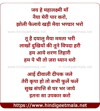 Lyrics of Jai He Mahalaxmi Maa - जय हे महालक्ष्मी माँ