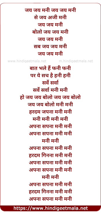 Lyrics of Jai Jai Money (Title Song) - जय जय मनी जय जय मनी