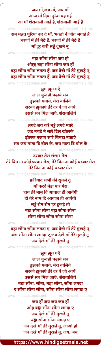 Lyrics of Jai Maa - जय माँ