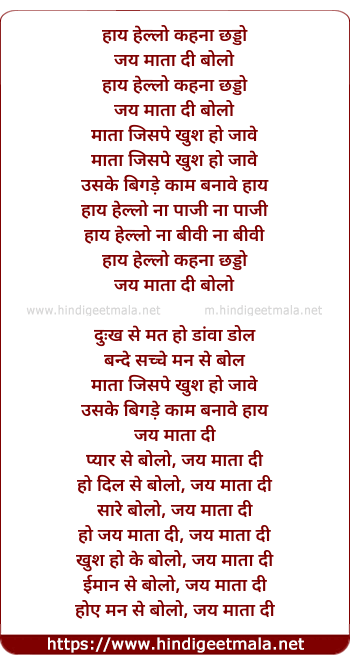Lyrics of Jai Maata Di - हाय हेल्लो कहना छड्डो