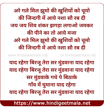 yaad rahega birju tera sar mundwaana yaad rahega