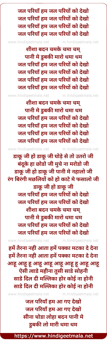 Lyrics of Jal Pariya Hum Jal Pariya - जल परियाँ हम जल परियाँ