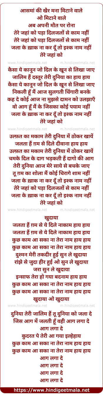 Lyrics of Jala Ke Khaak Na Kar Du - जला के ख़ाक ना कर दूँ