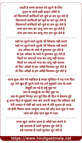 Lyrics of Jali Hai Shama Karwan Ko Lutne Ke Liye - जाली है शम्मा कारवां को लूटने के लिए