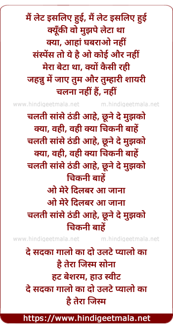 Lyrics of Chalti Sanse Thandi Aahe - चलती सांसे ठंडी आहे