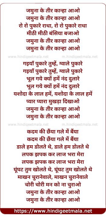 Lyrics of Jamunaa Ke Tir Kaanhaa Aao - जमुना के तीर कान्हा आओ