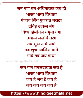 Lyrics of Jan Gan Man Adhinayak Jay He - जन गण मन अधिनायक जय हे