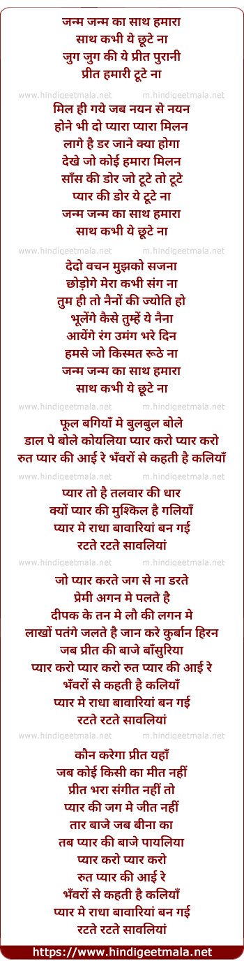 Lyrics of Janam Janam Ka Sath Hamara - जन्म जन्म का साथ हमारा