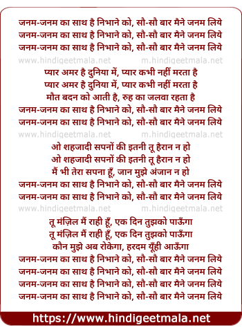 janam-janam ka sath hai nibhane ko, sau-sau bar maine janam liye