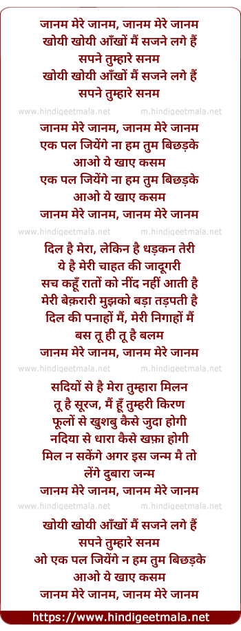 Lyrics of Janam Meri Janam, Janam Meri Janam - जानम मेरे जानम, जानम मेरे जानम