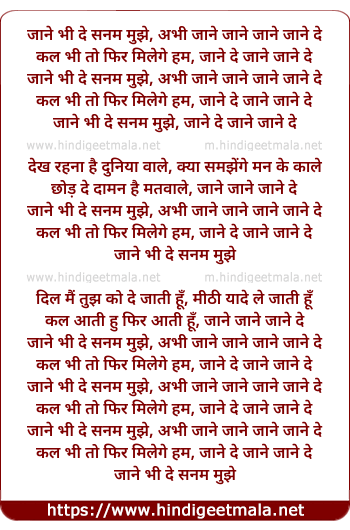 Lyrics of Jane Bhi De Sanam Mujhe Abhi - जाने भी दे सनम मुझे अभी
