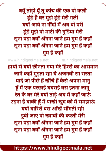 soona pada kyun angna jaane hum gum hain kahan
