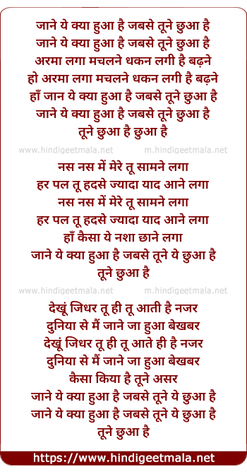 Lyrics of Jane Ye Kya Hua Hai - जाने ये क्या हुआ है