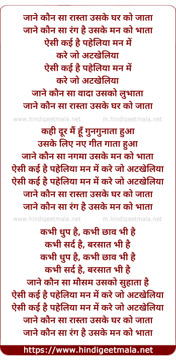 Lyrics of Jane Kaun Sa Rasta Uske Ghar Ko Jata - जाने कौन सा रास्ता उसके घर को जाता