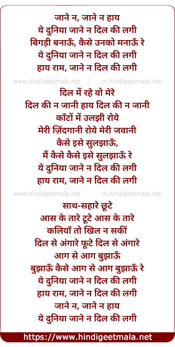 Lyrics of Janey Naa Janey Naa Hay - जाने न, जाने न हाय