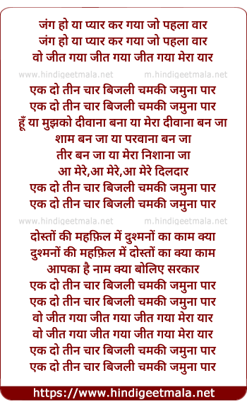 Lyrics of Jang Ho Yaa Pyaar, Ek To Tin Chaar