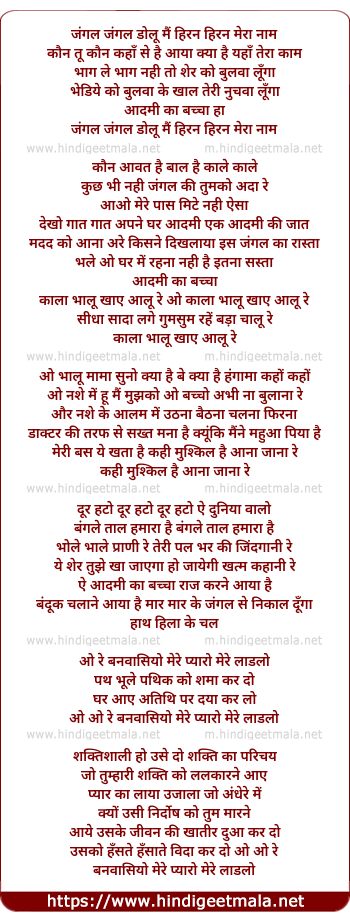 Lyrics of Jangal Jangal Dolu Mai Dolu - जंगल जंगल डोलू मैं डोलू