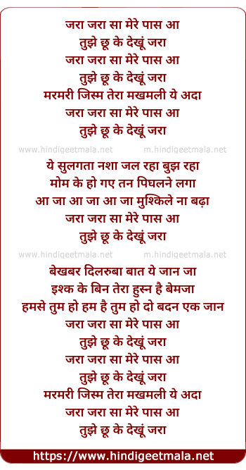Lyrics of Jara Jara Sa Mere Pas Aa - जरा जरा सा मेरे पास आ