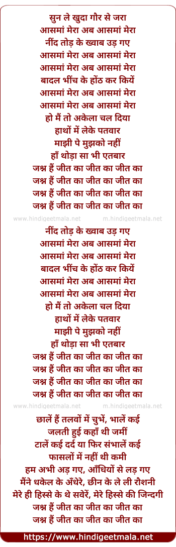Lyrics of Jashn Hai Jeet Ka - जश्न हैं जीत का