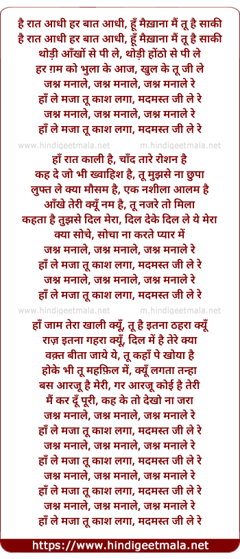 Lyrics of Jashn Manale Re - जश्न मनाले रे