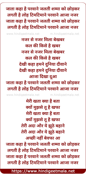 Lyrics of Jata Kaha Hai Parwane - जाता कहा है परवाने