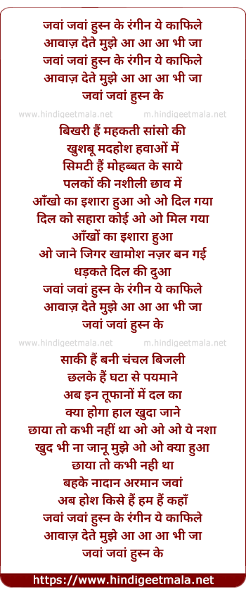 Lyrics of Jawaan Jawaan Husn Ke Rangin Ye Khafile - जवां जवां हुस्न के रंगीन ये काफिले