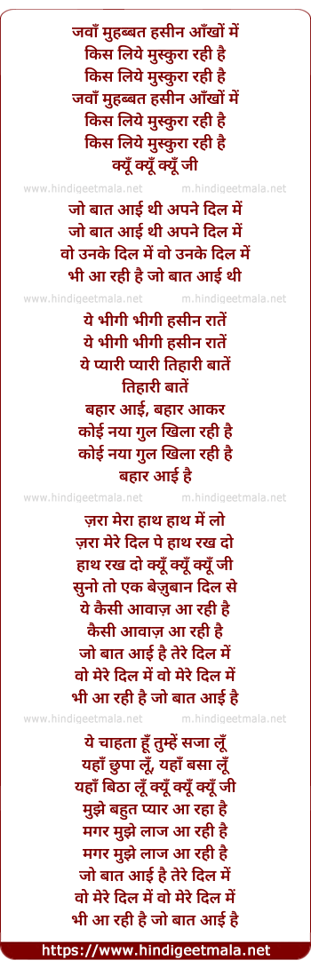 Lyrics of Jawaan Muhabbat Hasin Aankhon Me - जवाँ मुहब्बत हसीन आँखों में