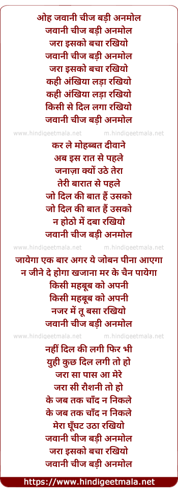 Poetic Translation - Lyrics of Jawani Cheez Badi