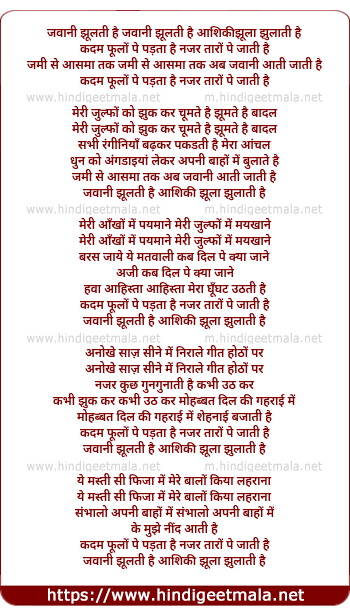 Lyrics of Jawani Jhulti Hai, Aashiqi Jhula Jhulati Hai - जवानी झूलती है, आशिकी झूला झुलाती है