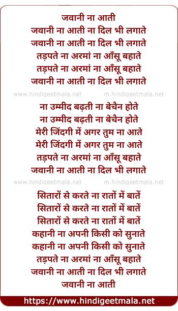 Lyrics of Jawani Na Aati Na Dil Bhi Lagaate - जवानी ना आती