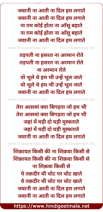 Lyrics of Jawani Na Aati Na Dil Ham Lagate - जवानी ना आती ना दिल हम लगाते