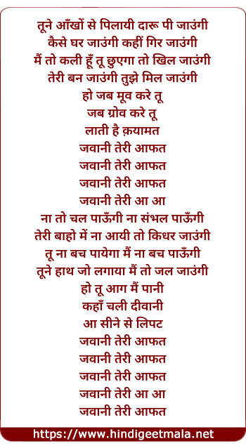 Lyrics of Jawani Teri Aafat - जवानी तेरी आफत