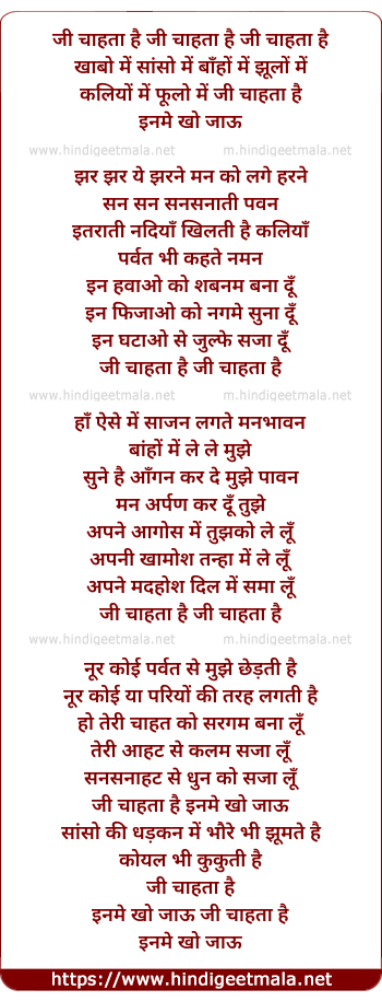 Lyrics of Jee Chahta Hai - जी चाहता है जी चाहता है जी चाहता है
