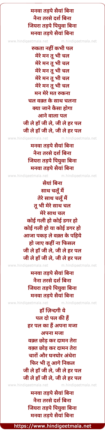 Lyrics of Jeele Harpal - मनवा तड़पे सैयां बिना