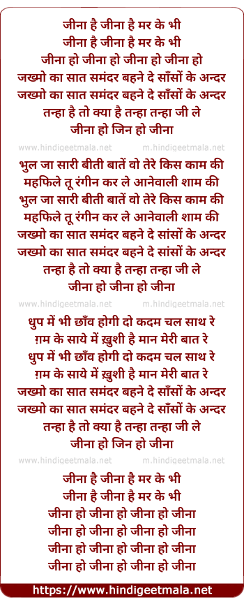 Poetic Translation - Lyrics of Jina Hai Jina Hai Marke Bhi Jina Ho Jina Ho - जीना है जीना है मर के भी जीना हो जीना हो