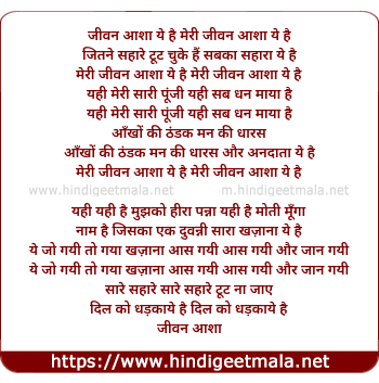 Lyrics of Jeevan Asha Yeh Hai Meri - जीवन आशा ये है मेरी जीवन आशा ये है