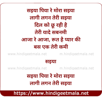 Lyrics of Jenny (Ashle Lagi Lagan) - सइया पिया रे मोरा सइया