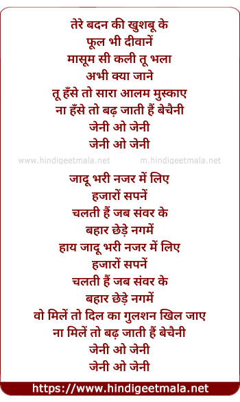 Lyrics of Jenny (Sad) - तेरे बदन की खुशबू के