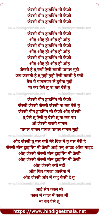 Poetic Translation - Lyrics of Jessie Driving Mee Crazyy - जेस्सी ड्राइविंग मी क्रेजी