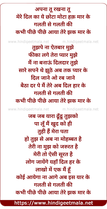 Lyrics of Jhak Maar Ke - झक मार के