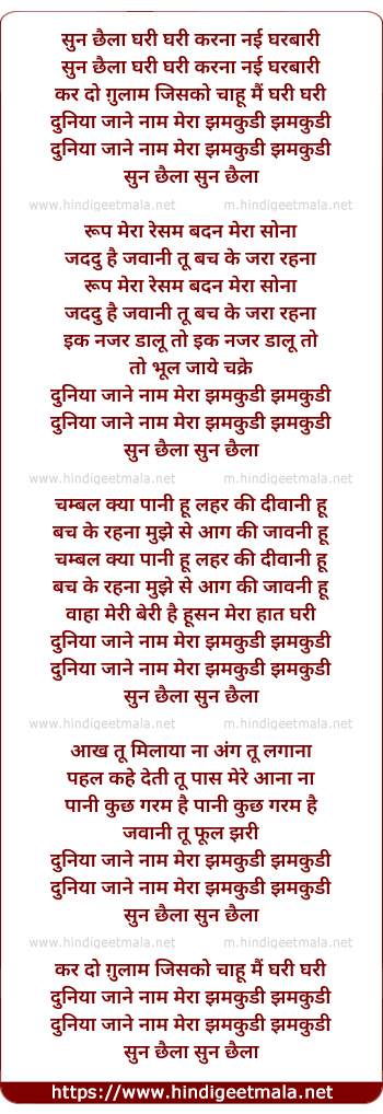duniya jane naam mera jhamkudi jhamkudi