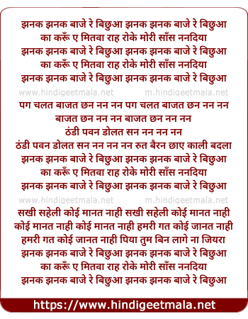 Lyrics of Jhanak Jhanak Baaje Re Bichhua - झनक झनक बाजे रे बिछुआ
