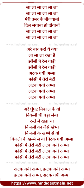 Poetic Translation - Lyrics of Jhansi Pe Rail Gaadi (Male) - ला ला ला ला ला ला