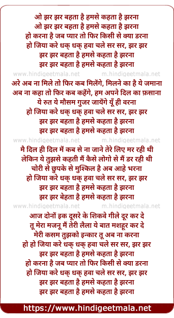 Lyrics of Jhar Jhar Behata Hai Hamase Kehata Hai Jharna - ओ झर झर बहता है हमसे कहता है झरना