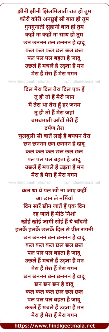 Lyrics of Jheeni Jheeni (Chhan Chhananan Chhan) - झीनी झीनी (छन छननन छन)