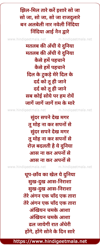 Lyrics of Jhil Mil Taare Karen Ishaare So Ja - झिल-मिल तारे करें इशारे सो जा