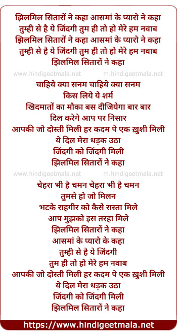 Lyrics of Jhilmil Sitaaro Ne Kaha - झिलमिल सितारों ने कहा