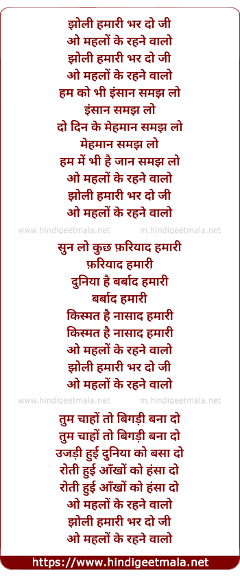Poetic Translation - Lyrics of Jholi Hamari Bhar Do Ji - झोली हमारी भर दो जी