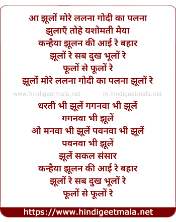 Lyrics of Jhoolo More Lalna - झूलों मोरे ललना