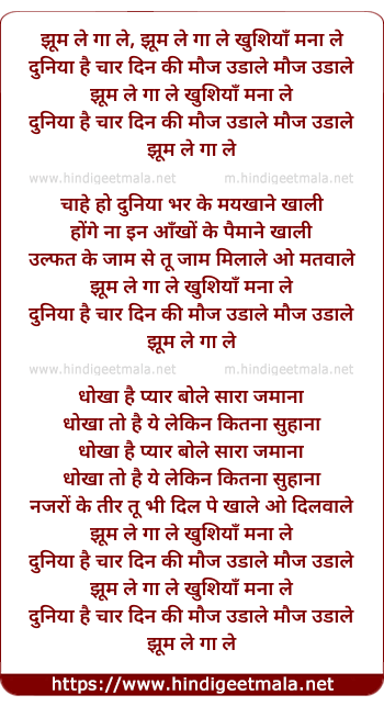 Lyrics of Jhoom Le Gaa Le Khushiya Mana Le - झूम ले गा ले खुशियाँ मना ले
